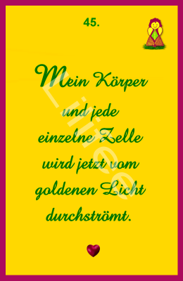 Es ist eine sehr schöne meditative Vorgehensweise und in dem du dir visualisierst, dass jede einzelne Zelle deines Körpers vom goldenen Licht durchströmt wird, so wird es geschehen.